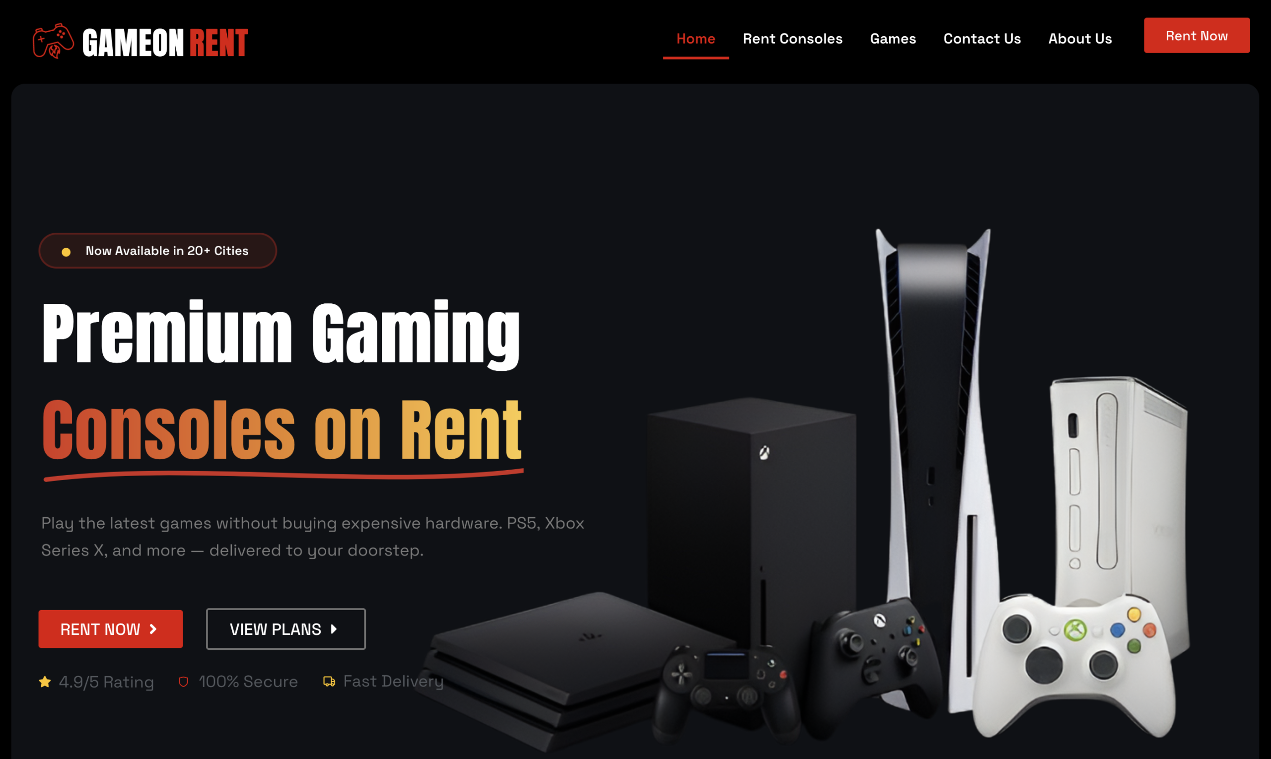Designed and developed a premium game console rental website with a modern, high-end UI and scalable architecture.